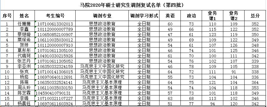 根据我院招生计划及一志愿复试招生录取情况,现将我院2020年硕士研究生调剂复试名单(第四批)予以公布。复试时间为2020年6月9日上午8:30开始,请各位考生保持电话畅通,我院将电话通知复试相关事宜及注意事项,因联系不上造成的后果由考生自行承担。
