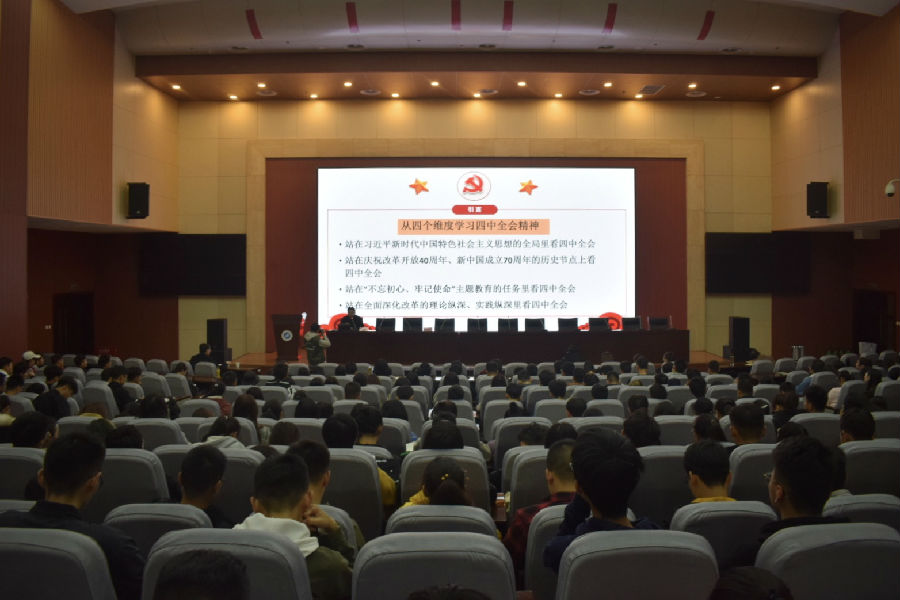 副院长张海涛、学院教授委员会委员郭艳英作为学校宣讲团成员在鄠邑校区弘石报告厅为鄠邑校区师生代表700余人宣讲十九届四中全会精神,为全校师生迅速掀起学习十九届四中全会精神热潮进行了积极动员。