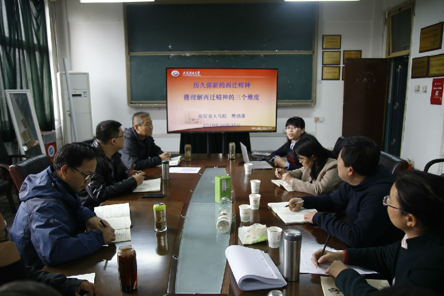 樊晓燕讲到,西迁精神与革命时期的红船精神、井冈山精神、延安精神、张思德精神、西柏坡精神,以及社会主义建设时期的大庆精神、红旗渠精神、焦裕禄精神等等,共同形成了中国共产党的精神谱系。随后,她分别从历史维度、实践维度、理想维度,对西迁精神进行了阐释:西迁老教授继承知识分子爱国传统,将个人事业与家国情怀相融合,响应国家号召,积极投身西迁建设;西安交通大学践行着现代大学传承文明、提供知识、引领价值的使命,不负时代重托,建校于民族存亡之际,西迁于国家需要之时;西安交通大学继续引领时代发展,成立丝绸之路大学联盟,建设中国西部科技创新港,以奋斗续写新的辉煌。