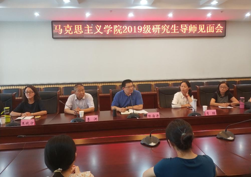 2019级研究生新生入学教育暨导师见面会在鄠邑校区图书馆一层第二会议室举行。会议由张海涛副院长主持,院党总支书记李渊、学院王晓方教授、肖琼教授等8位老师参加会议。