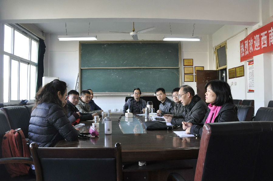 基础课负责人谭亚莉一行5位老师到我院交流学习,各教研室主任与西南财经大学同仁在办公室进行了座谈。