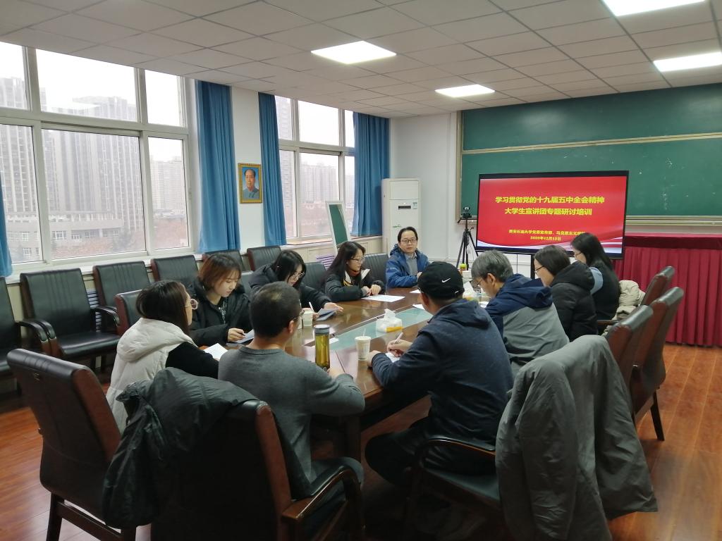 向我校青年学子宣讲好十九届五中全会精神,宣讲团成员责任重大、使命光荣。宣讲团成员纷纷表示,一定要提高政治站位,增强政治自觉,充分认识宣讲工作的重大意义;一定要认认真真备课,扎扎实实做好宣讲工作,推动全校师生兴起学习宣传贯彻全会精神的热潮,确保党的重大决策部署在我校落地生根。