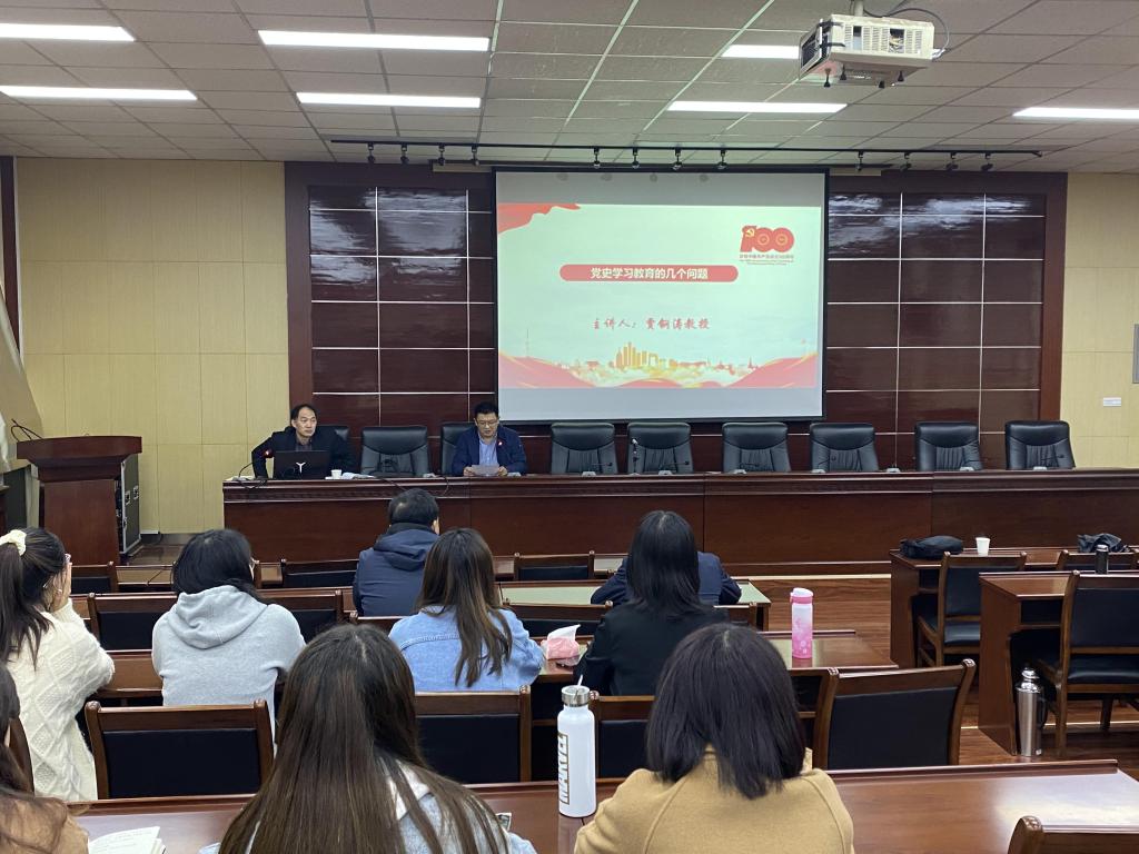 本次讲座中,贾钢涛教授从正当其时:党史学习教育的目的和意义;重温初心:党史学习教育的重点内容;守正创新:党史学习教育的方式方法以及传承创新:大力加强党史研究四个方面对党史学习教育进行了解读。贾教授将生动的党史故事、形象党史人物融入理论框架,用六个“深刻领悟”概括了党史学习教育的重点内容,指明了党史学习、党史研究的重要性。最后谈到党史学习教育要树立正确的党史观,准确把握“学史明理、学史增信、学史崇德、学史力行”的深刻意义,要坚持在大历史观中观历史,站在新时代的高度回顾与研究党史,坚持在传承与创新中推进党史研究。