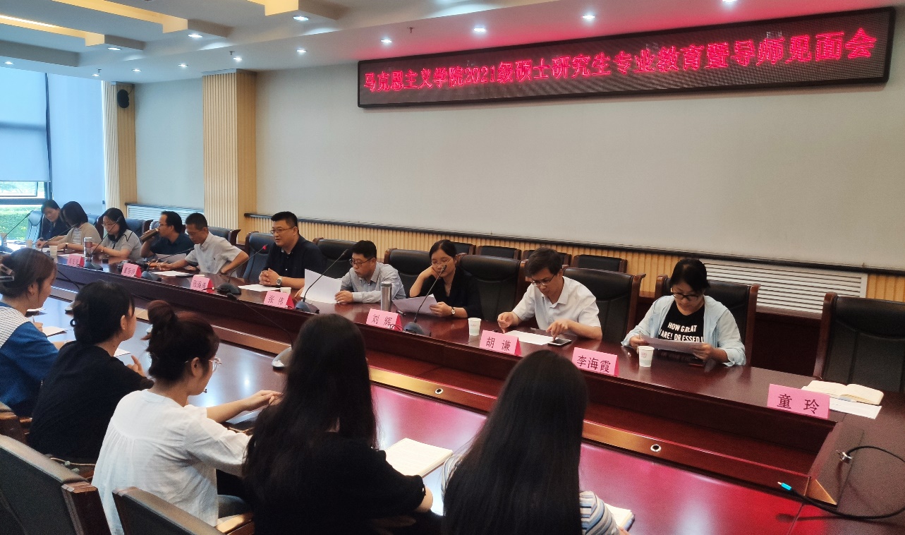 2021级研究生专业教育暨导师见面会在鄠邑校区图书馆第二会议室顺利举行。会议由张海涛院长主持,学院党总支书记张伟、副院长董春诗、刘辉教授、郭艳英副教授等10位老师参加了会议。