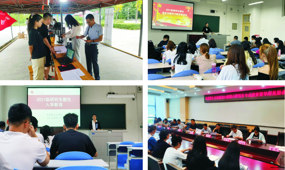 精心安排了一系列入学教育活动,陆续开展了研究生新生见面会、入学教育大会、校纪校规教育大会、校史校情教育大会、专业教育暨导师见面会、党史专题学习教育宣讲会、线上学术讲座、参观铁人纪念馆等一系列丰富多样的活动,以此加强研究生新生的思想政治、学风和学术道德教育,帮助他们了解研究生培养环节和要求,促使他们尽快适应和规划好研究生期间的学习和生活。入学教育持续了近一周时间,学院希望通过各项活动力争帮助学生树立爱国、爱校、爱马院的情怀;引导学生遵章守纪,做一名守法公民;教育学生脚踏实地,扎扎实实立足专业学业学术,做一名全面发展的西石大研究生。