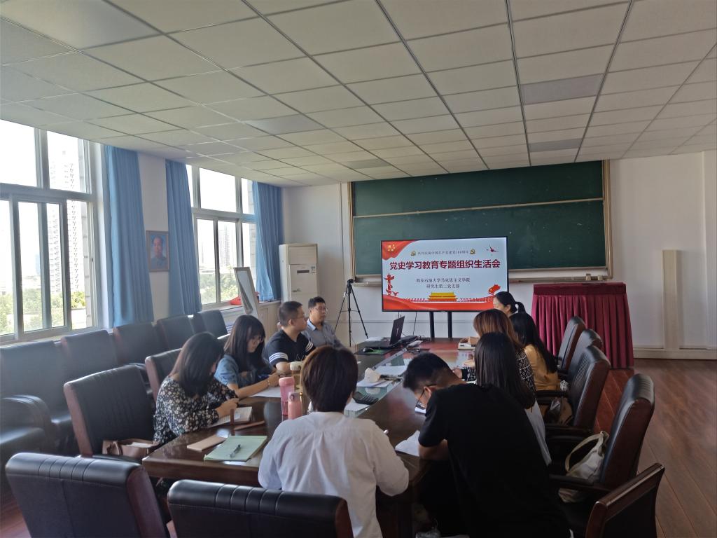 研究生第三党支部党史学习教育专题组织生活会雁塔校区第一教学楼818会议室召开,学院党总支书记张伟参加会议并为研究生党员讲授专题党课。