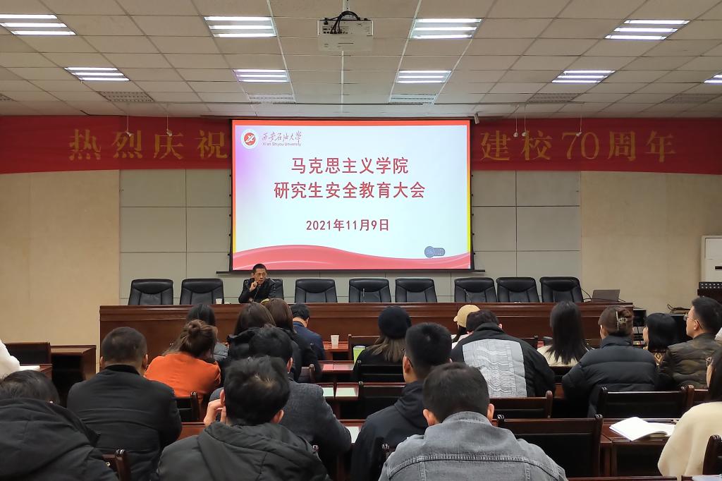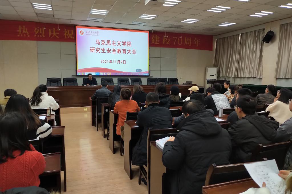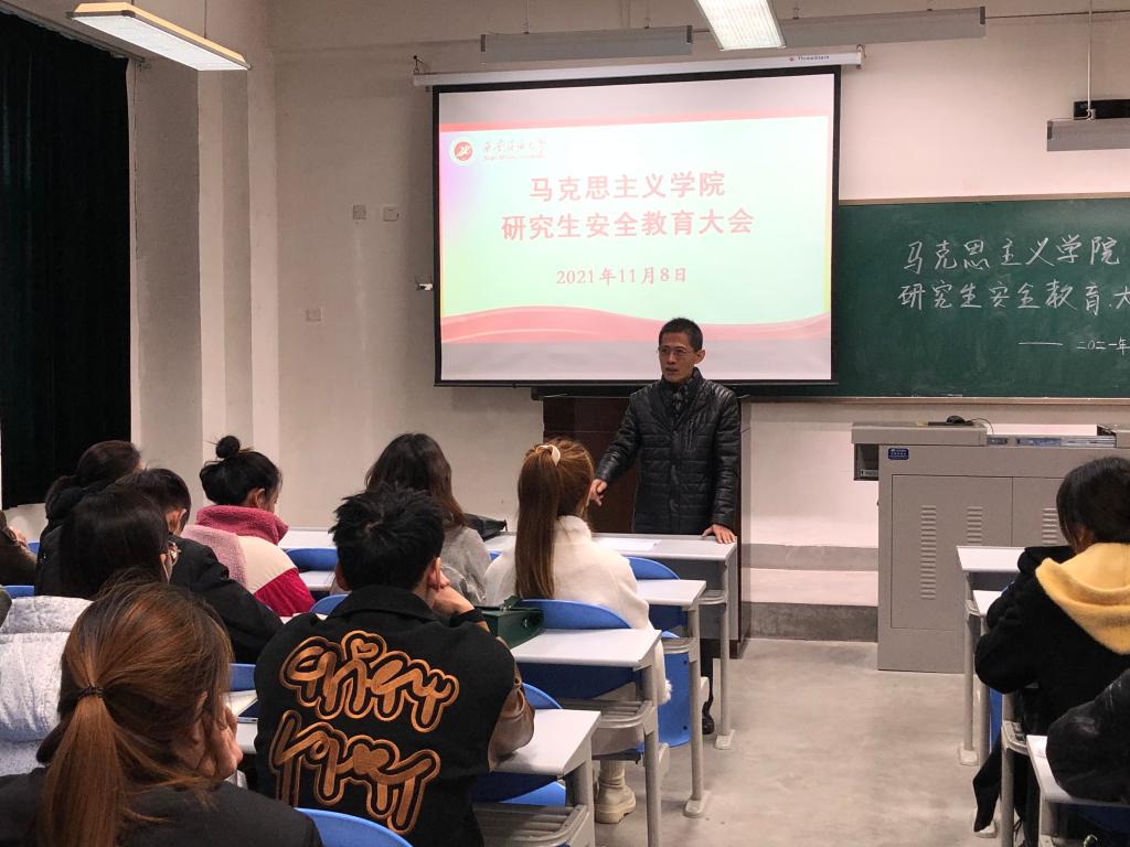 11月8日下午,鄠邑校区的安全教育大会在A119教室召开,辅导员童玲主持会议,学院党总支副书记兼副院长董春诗出席并讲话,2021级全体研究生共35人参加了会议。
