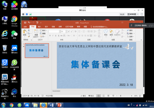 中国近现代史纲要教研室27位老师通过腾讯会议召开了线上集体备课会,学院党总支书记张伟、副院长董春诗及中国近现代史纲要课程全体任课教师参会,会议由纲要教研室主任赵剑波老师主持。