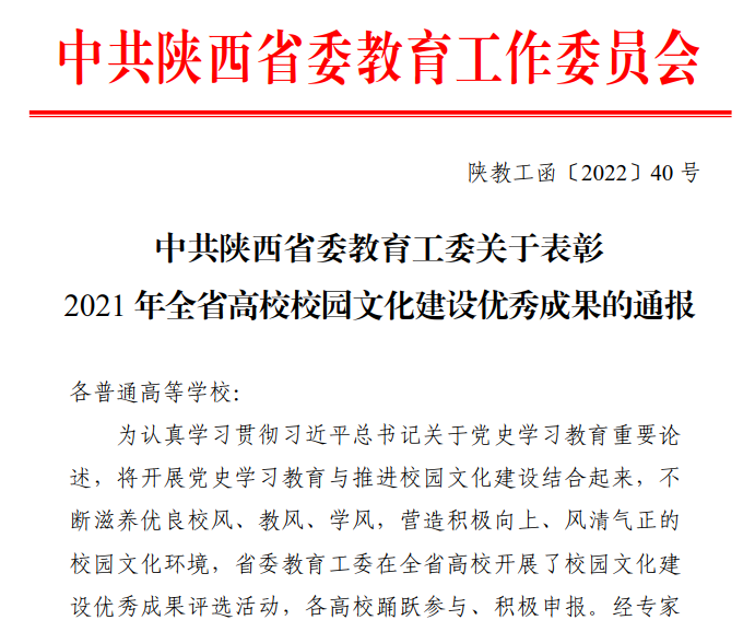 据悉,为做好2021年全省高校校园文化建设优秀成果评选工作,我校提早谋划、精心组织、周密安排,于2021年3月启动我校第七届校园文化建设优秀成果评选活动。经各院(系)、职能部门推荐申报,专家评审、综合评议,共评选出创新奖1项、一等奖2项、二等奖3项、三等奖5项。近年来,我校积极培育和践行社会主义核心价值观,加强文化传承与创新,推动大学文化建设,形成了一批体现社会主义精神文明特点和规律、体现时代特征和学校特色、深受学生喜爱的校园文化成果和品牌,营造了良好的文化育人环境,提高了人才培养质量。