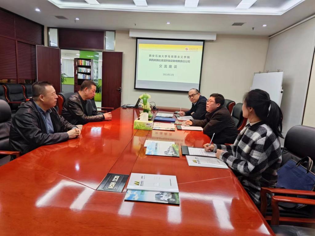 党总支书记张伟带领教工第四党支部副书记李建伟、研究生辅导员童玲一行赴陕西美漪达物业管理有限公司交流座谈。陕西美漪达物业管理公司总经理朱胜利,副总经理刘文胜出席会议。