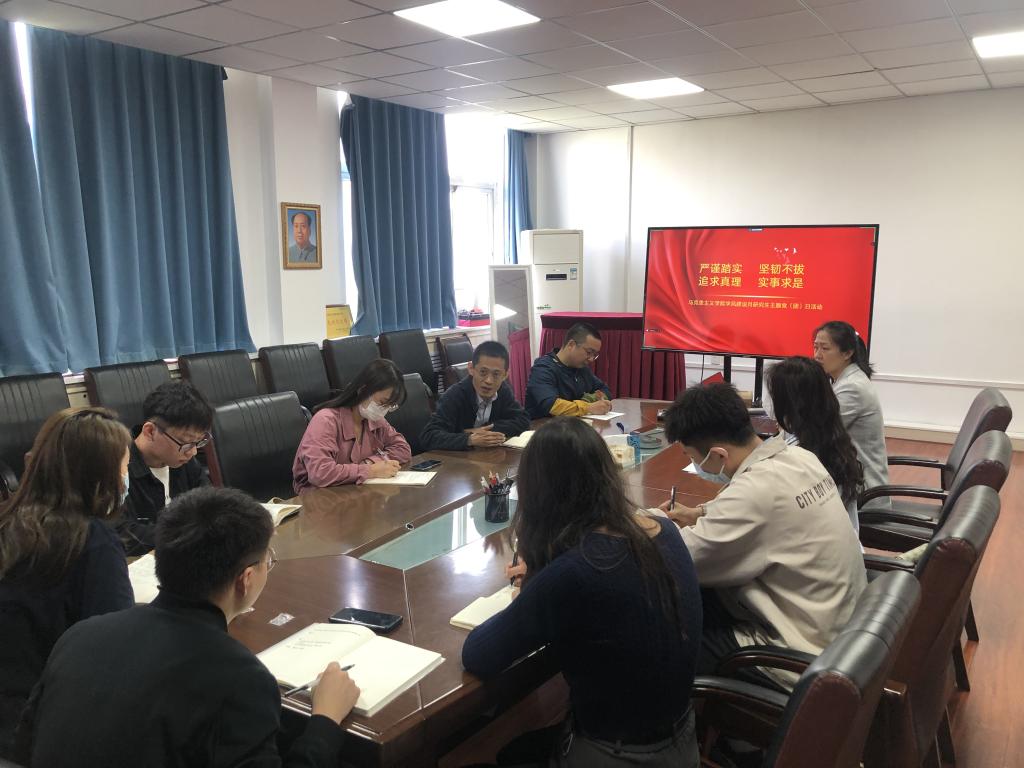 研究生第一党支部在雁塔校区华油能源楼818会议室召开“恪守学术规范,倡导优良学风”的主题党日活动,活动由辅导员童玲主持,学院党总支副书记、副院长董春诗参加了此次活动。