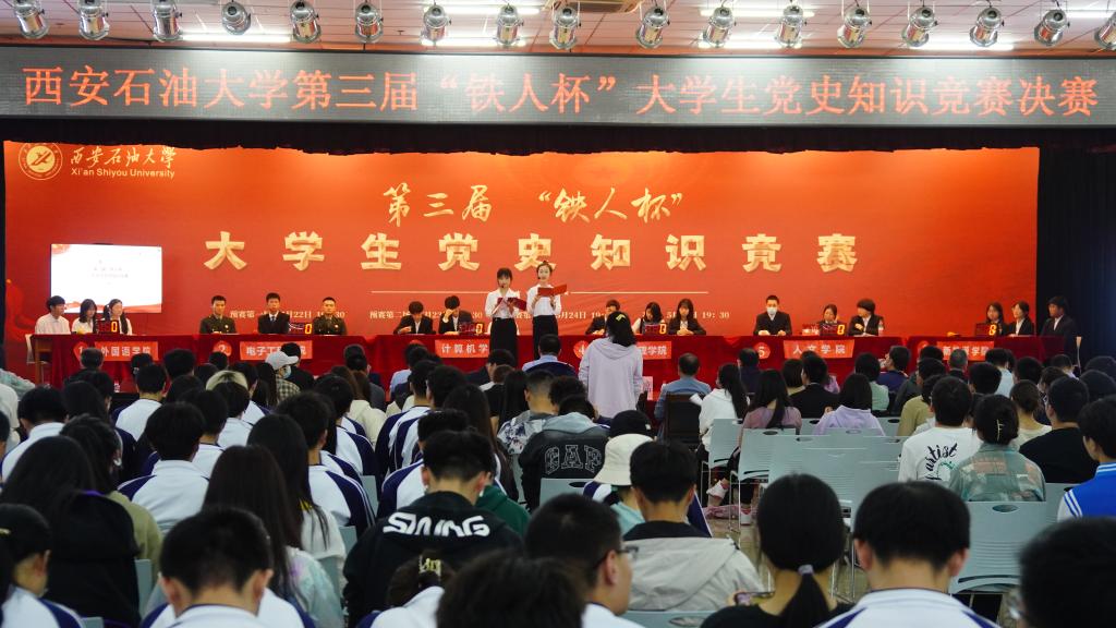 第三届“铁人杯”大学生党史知识竞赛决赛在鄠邑校区腾辉大学生活动中心举行。校党委副书记张木莅临现场指导,相关部门、院(系)负责人、教师及学生代表观摩了此次竞赛活动。