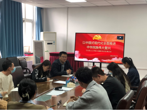 院长张海涛教授在雁塔校区华油能源楼818会议室为研究生第一党支部全体党员讲授了题为《以中国式现代化全面推进中华民族伟大复兴》的专题党课,党课由辅导员童玲主持。