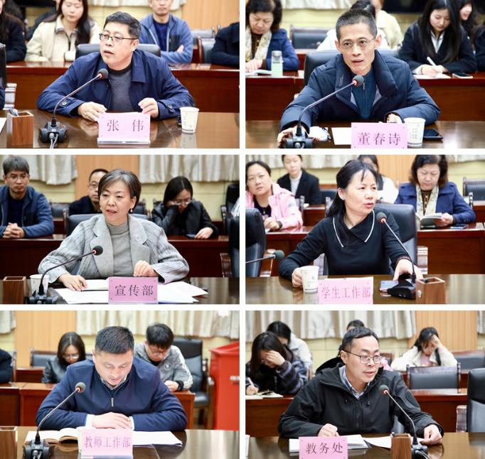 宣传部、学生工作部、教师工作部、教务处等职能处室负责同志分别发言,就创新和改进思政课建设、构建“大思政课”育人格局等提出建议。