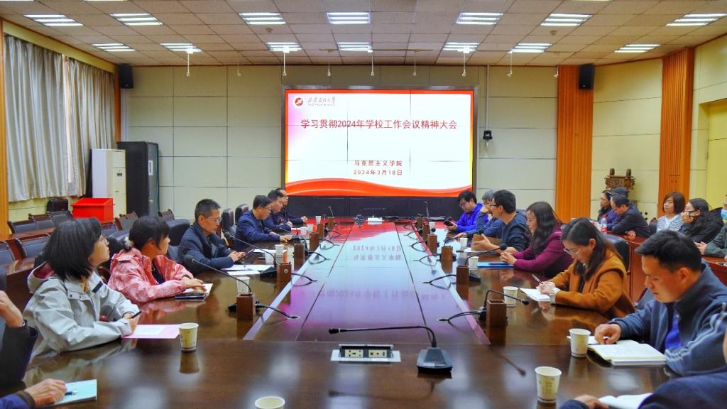 张伟传达了我校第七届教职工代表大会第六次会议第八届工会会员代表大会第四次会议暨2024年学校工作会议精神,带领参会人员教师学习了王进富校长《锚定目标加油干 实干担当创一流 奋力建设特色鲜明的高水平教学研究型大学》的工作报告和常江书记《争做行动派,跑出加速度》的讲话。