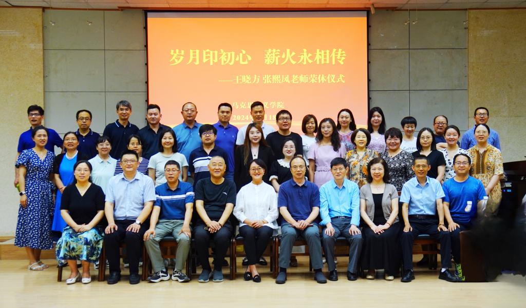 全体师生对2023年光荣退休的教师王晓方、张熙凤表达崇高的敬意与衷心的感谢,感谢二位教师勤恳教学、潜心学术,辛勤躬耕教坛三十余载,几十年如一日孜孜不倦、甘于奉献,始终保持饱满的责任心和充沛的热情,对学生投入、对工作负责,为学院的发展建设、人才培养、教育科研、学科建设、交流合作等方面做出的突出贡献。张海涛祝福二位教师荣休后保重身体、享受生活,常回学院看看,积极建言献策,发挥银发智慧。
