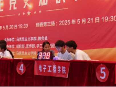 最激动人心的"勇攀高峰"环节,材料科学与工程学院代表队沉着应战,凭借对"延安精神与铁人精神的内在联系"等综合题目的精彩作答,最终以480分的优异成绩夺冠,电子工程学院获得亚军。两支队伍携手晋级决赛。